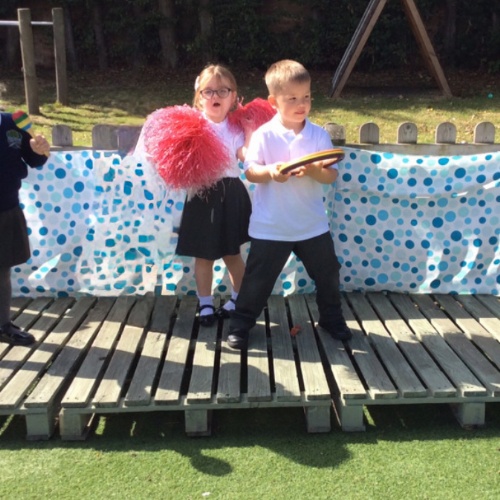 We use our outside area to enhance, extend and build on our learning. We enjoy spending time outside, constructing dens, making mud pies in the mud kitchen, building vehicles with the large blocks, telling stories with the small world or whizzing in and out of our friends on the bikes. We are always active shooting hoops, building obstacle courses and developing our strength and problem solving skills on the climbing frame and trim trail. We also enjoy our weekly PE lessons where we have the opportunity to use lots of new and different equipment.